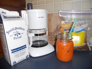 One of my favorite drinks is Thai Tea. It’s creamy and has that solid tea taste while being a creamsicle orange. I decided to buy my own brew and save myself some dollhairs by making it myself. Alas I got a splitting headache every time I drank it. There are very few ingredients in the Thai tea mix (pictured in the Ziploc bag) and I have a feeling that it is the coloring (horror!) that is giving me such a negative reaction. The headache is so bad that I will never drink this stuff again. Additionally, I am against coloring. It is unnecessary in food production and harmful to the body.