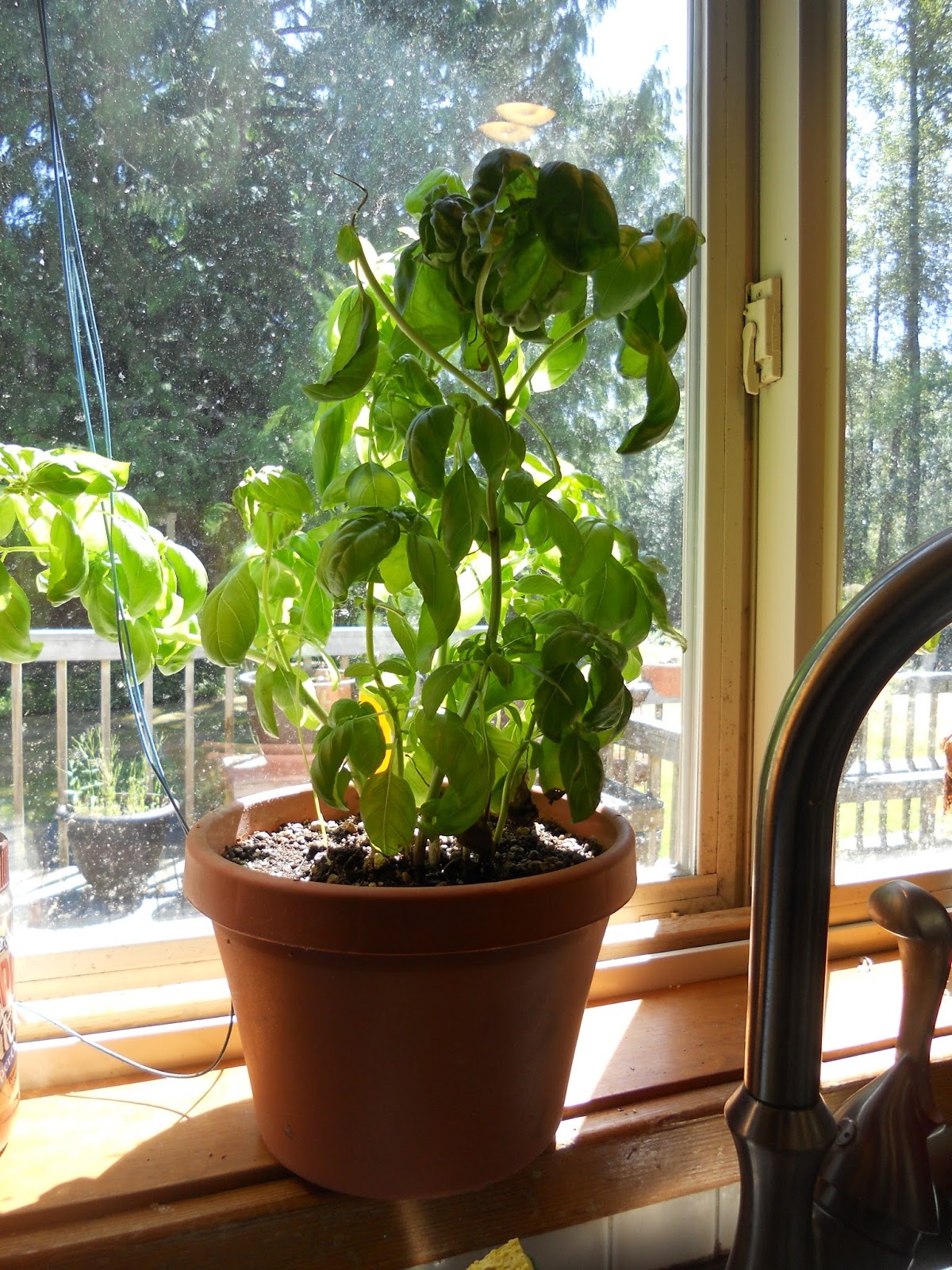 1. That's a lovely basil plant, is it yours? We've recently planted two tomato plants with some basil around the edges, but they need to grow a bit more probably before they will be ready for plucking and eating.