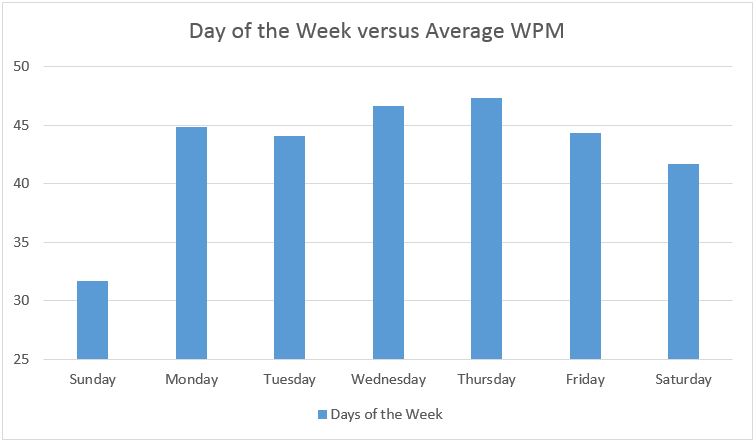 Average WPM on The Optimist Sees the Donut – 41.7 (Max=69.8 and min=15.8)