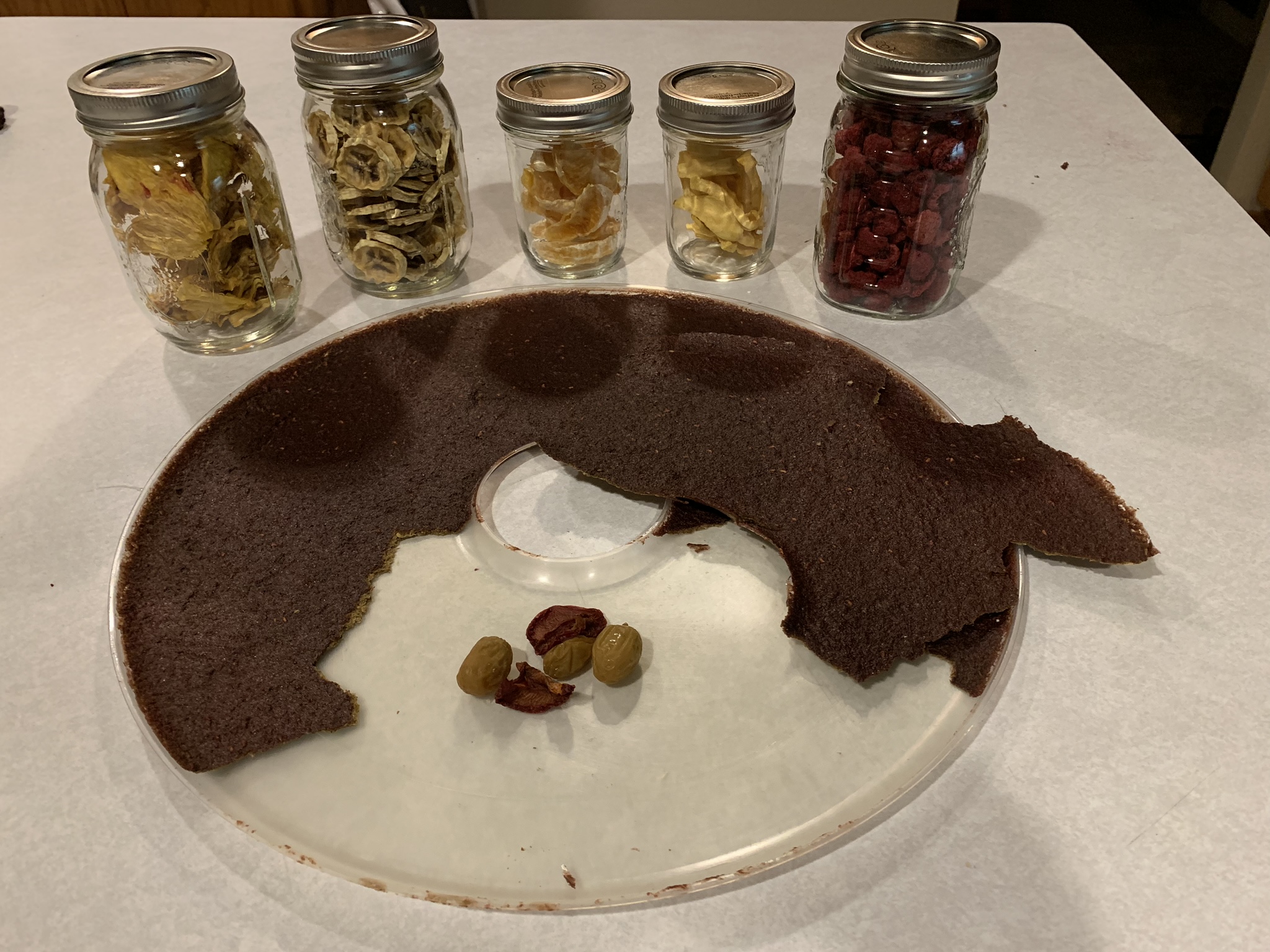 I’ve discovered more local fruit that I can forage! It’s raspberry season now and there are a lot of plums that are ripe. I believe that I have a mini plum tree in my own front yard! I also know of a location of a very productive plum tree and they are almost perfectly ripe! My housemate has a dehydrator that I played around with to dry out pineapple, apple, banana, orange, raspberry, and plum, as well as make some fruit leather. I can’t wait for the apples and pears to ripen so I can dry out a whole batch of them. I wonder how long they will last in my jars? Is there something I can do to make them last longer? I’ve also found some already ripened blackberries and have frozen a bunch and juiced some more. I’ve been making my own blackberry vinaigrette with them. The juice I made was a complete mess, but the juice is thick and delicious! If I can juice the blackberries in a larger volume and de-seed it, I can freeze it to use later in the year. Maybe I’ll make blackberry ice cubes?