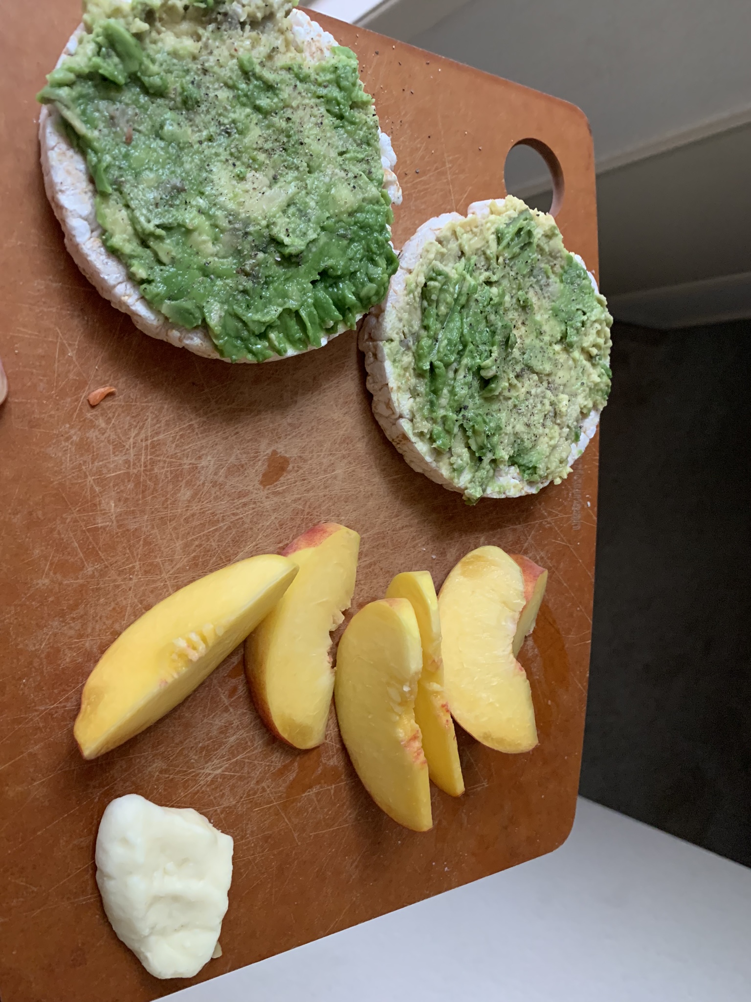 I’ve been making more GF avocado toasts! I just take two plain rice cakes and spread with fresh avocado. I like to top them with a pinch of sea salt and pepper.