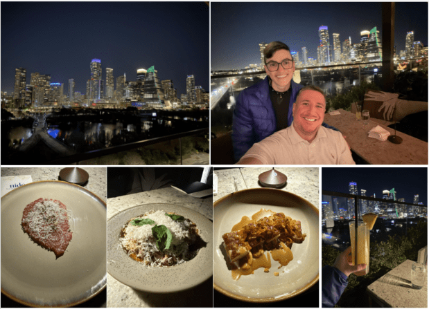 From there, I backtracked again, crossed the Pfluger Pedestrian Bridge, and made my way to my final reservation of the night at Nido, inside The Loren. Jon met me there for a late-night birthday dinner.