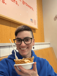 Birthday freebie season was in full swing, so I stopped by Jeni’s to redeem my free birthday “Celebration Scoop” with a waffle bowl — a treat worth about $8.