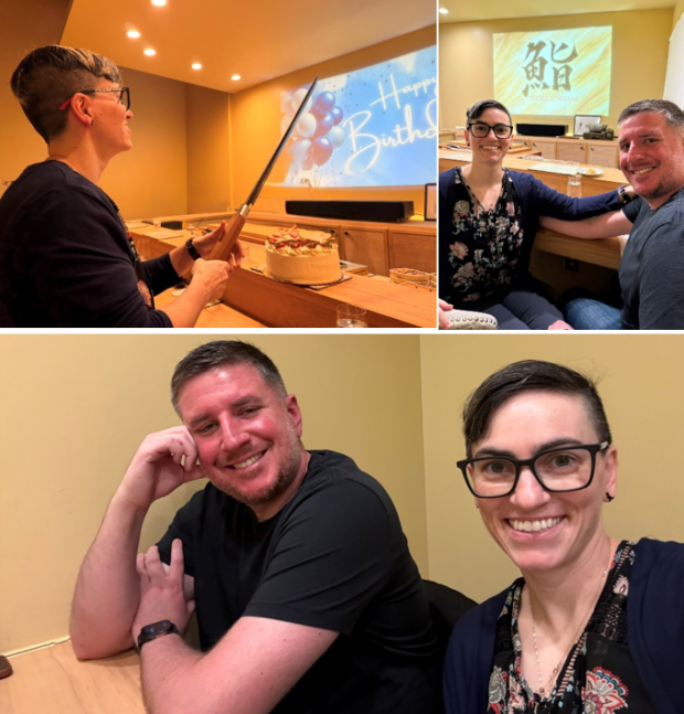 My second time going to this outstanding Austin omakase with now James Beard-nominated chef – Michael Che! Jon got another cake from Upper Crust Bakery that was so good we couldn’t help eating all the leftovers after feeding the other 8 people at the Omakase (including the chef and other employee/owner).