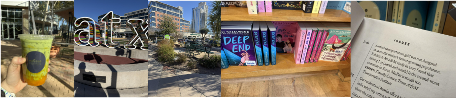 While figuring out my next move, I had an uncomfortable interaction with someone nearby (they were yelling at people trying to go to the library and yelled at me because of the loud cat print onesie I was wearing), so I decided to leave the area immediately. On the walk over to my next planned stop, I dropped by Mañana Coffee for a pick-me-up before continuing on to Whole Foods and BookPeople.