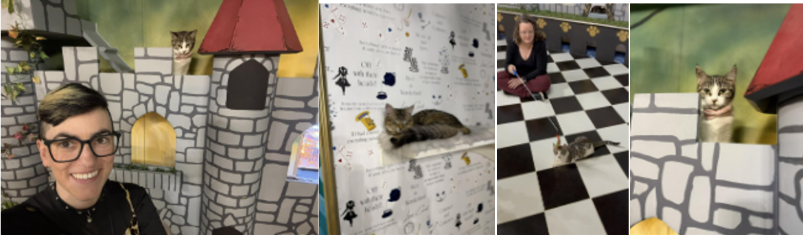 “Step into our royal lounge and mingle with Austin’s finest felines. Expect cuddles, cat naps, and a few dramatic poses — they are royalty, after all.”