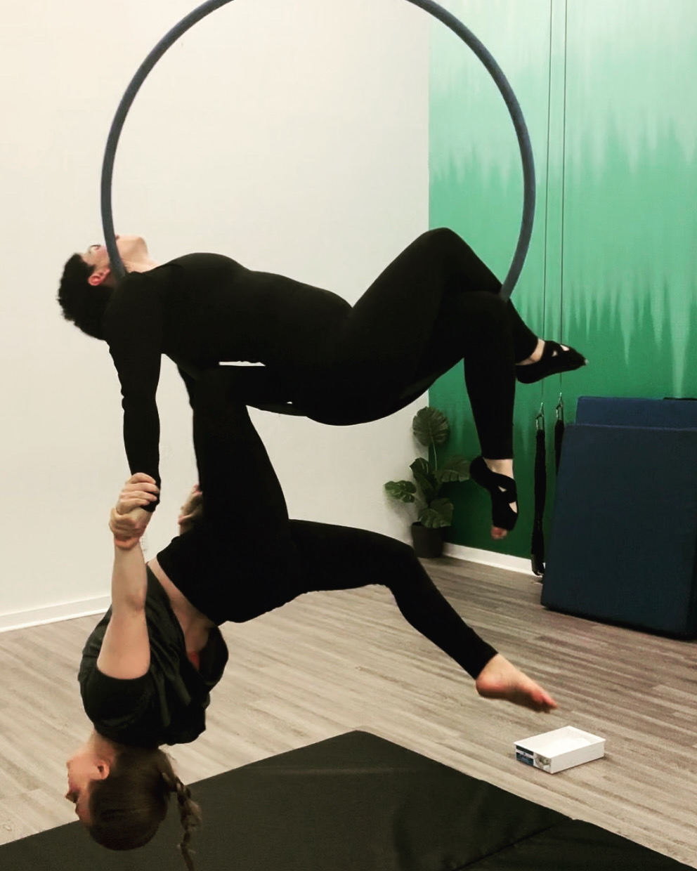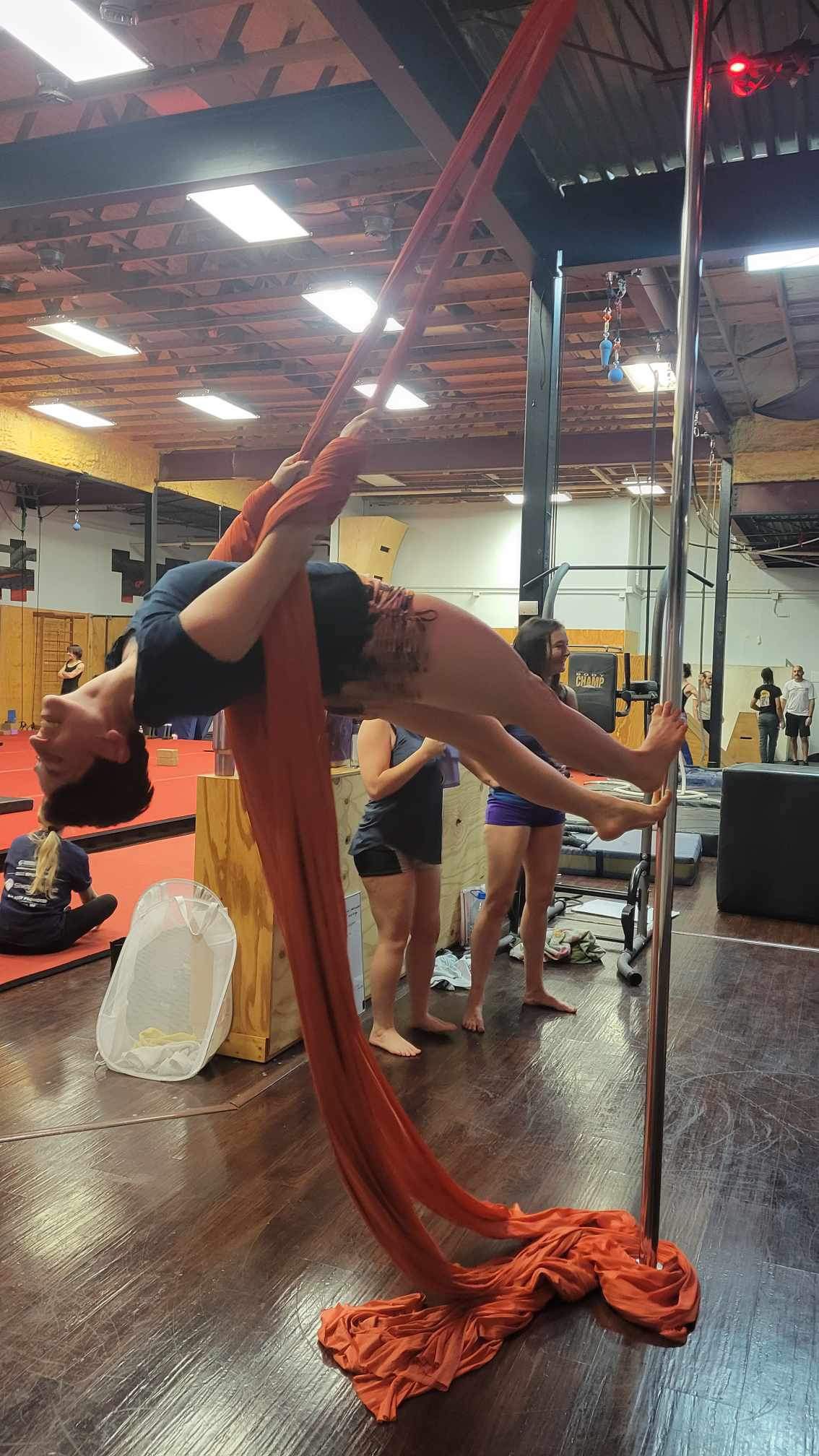 - I took four specialty workshops including a pentagram workshop, a trampoline workshop, and an aerial pull workshop
