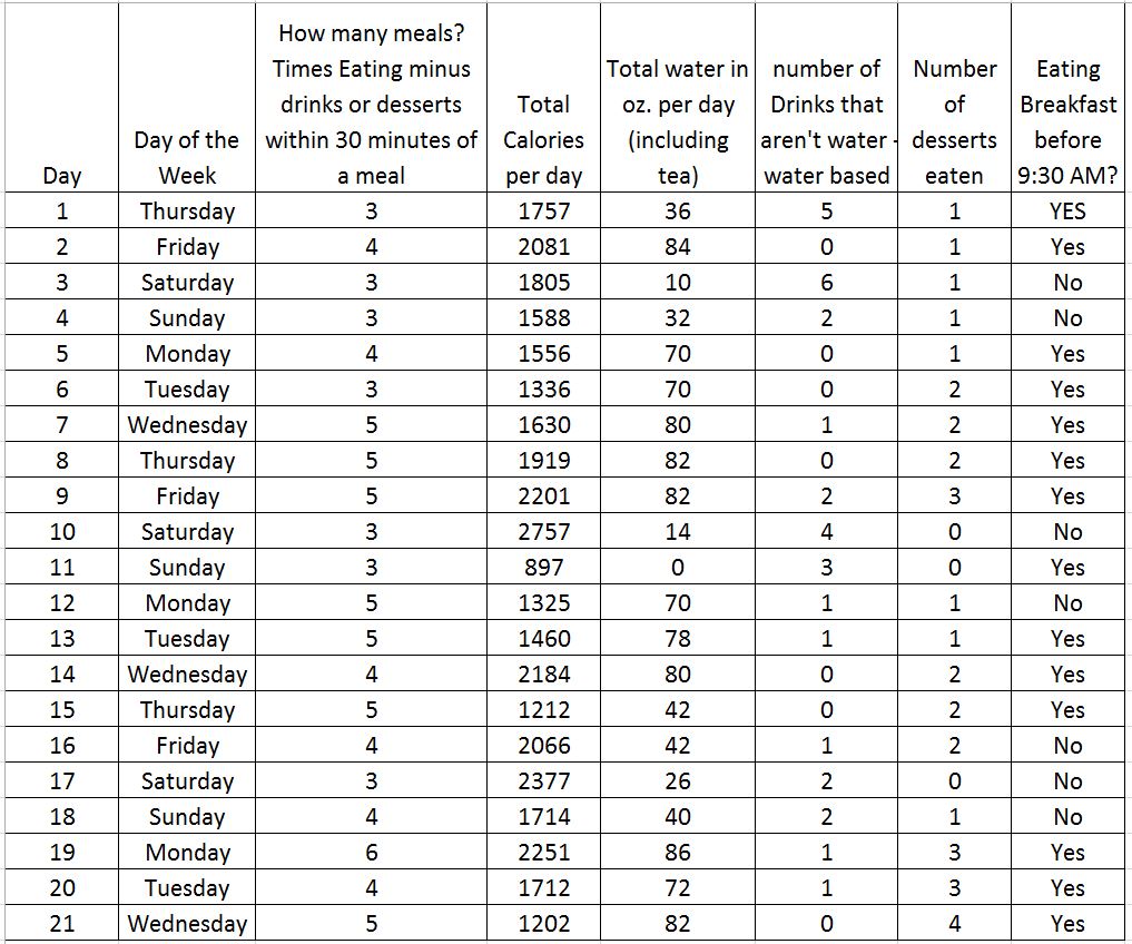 Here is my calorie consumption chart for the week (I didn’t weigh my food for Saturday)